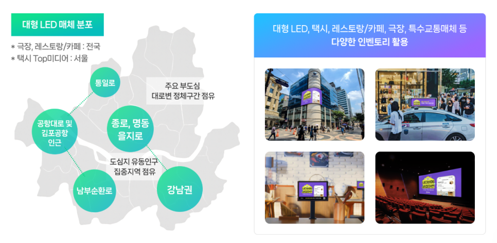 자체 DOOH 인프라를 중심으로 광고 수익화를 시도하고 있어요.
